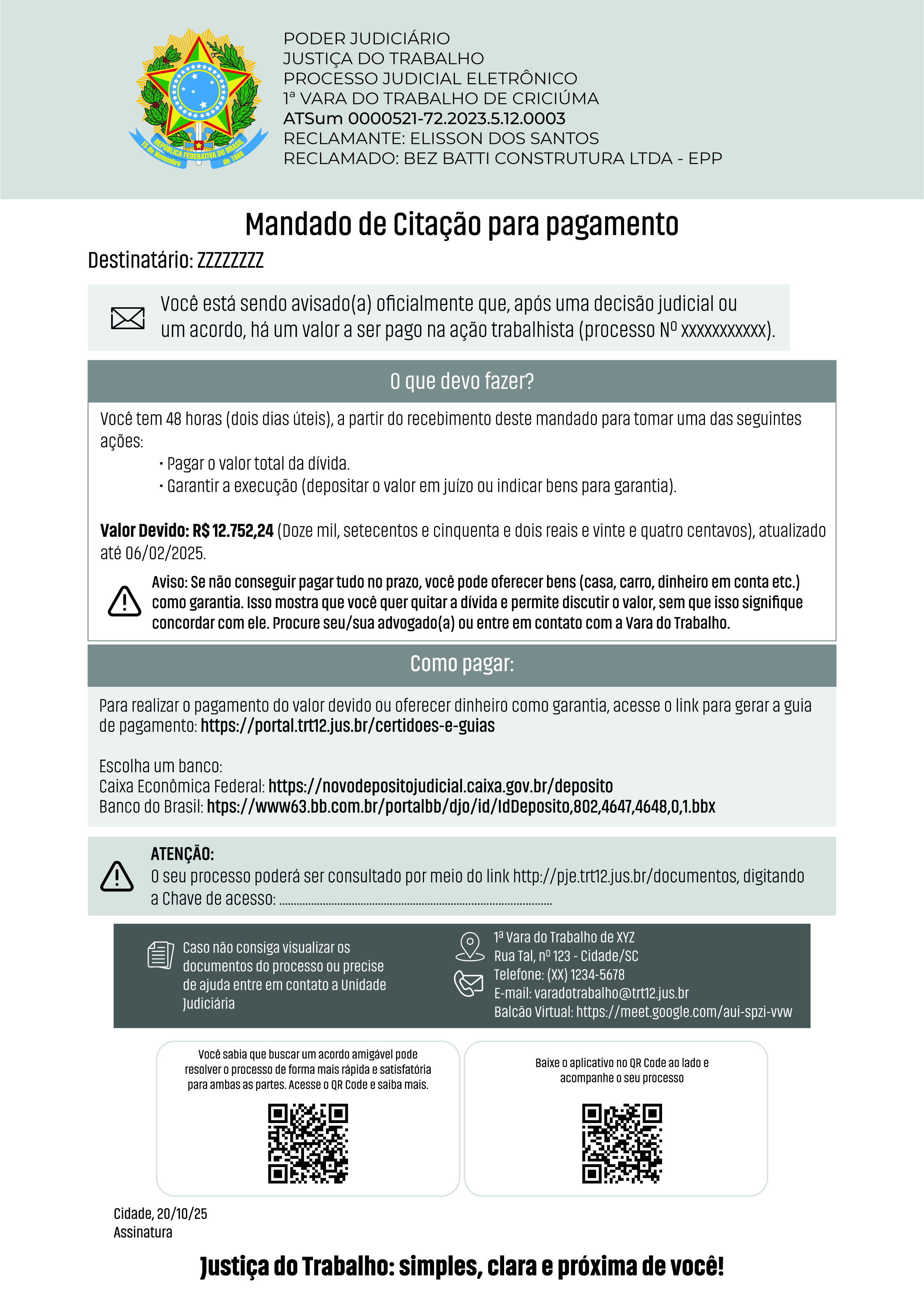 Documentos em linguagem simples elaborados (os QRCode estão pendentes, aguardando envio pelos TRT13 e TJPB):