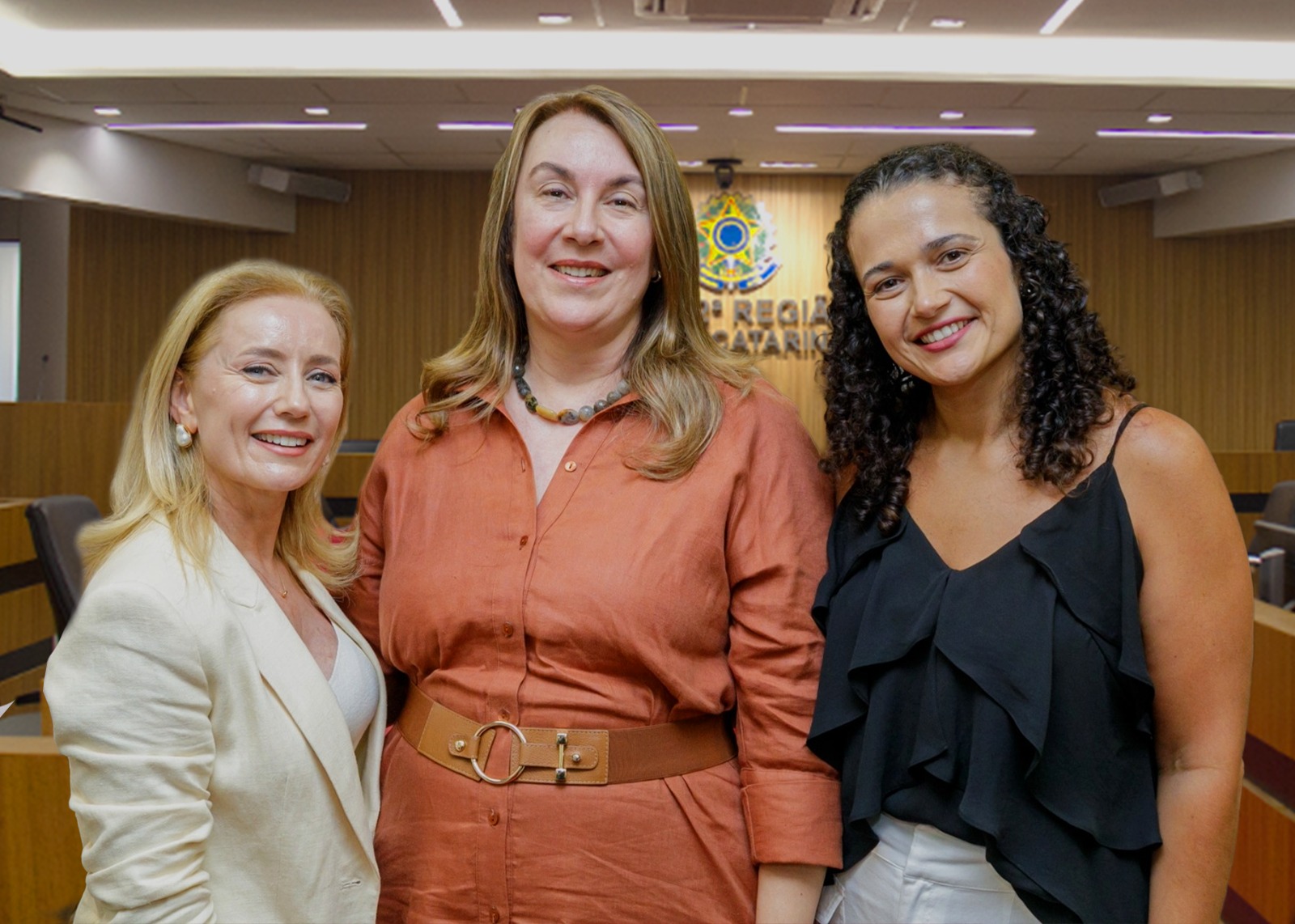 Desembargadora Teresa Cotosky entre a diretora-geral, Fernanda Ferreira (e), e a secretária-geral da Presidência, Ana Vasel