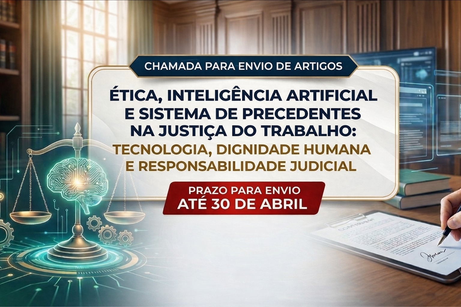Os textos submetidos deverão abordar o tema tema “Ética, inteligência artificial e sistema de precedentes na Justiça do Trabalho: tecnologia, dignidade humana e responsabilidade judicial.”