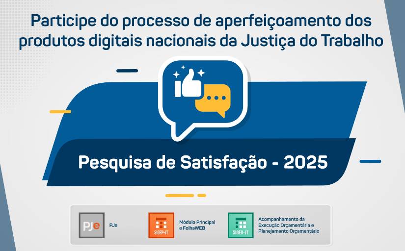 A pesquisa de satisfação com os produtos digitais nacionais da Justiça do Trabalho referente ao ano de 2025 já está disponível para ser respondida. Promovido pelo Conselho Superior da Justiça do Trabalho (CSJT), o levantamento visa medir o grau de satisfação dos usuários com as principais plataformas digitais utilizadas no Judiciário trabalhista. Os formulários ficarão disponíveis até 6 de março.