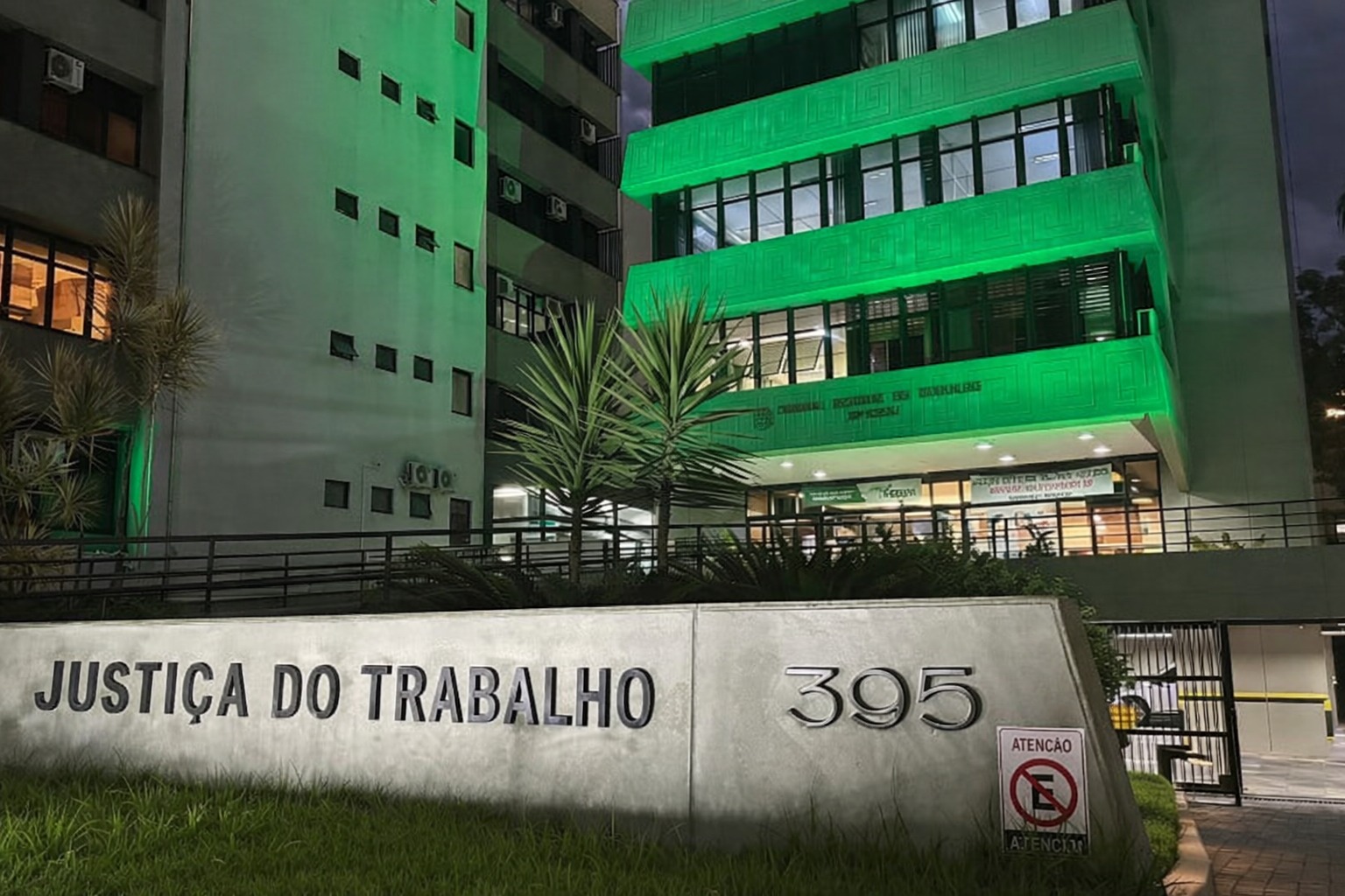 As fachadas dos prédios do Tribunal Regional do Trabalho da 12ª Região (TRT-SC), da Ordem dos Advogados do Brasil – Seccional de Santa Catarina (OAB-SC) e da Federação das Indústrias de Santa Catarina (Fiesc) estão iluminadas na cor verde durante este mês, em adesão ao movimento Abril Verde, voltado à prevenção de acidentes de trabalho e de doenças ocupacionais.